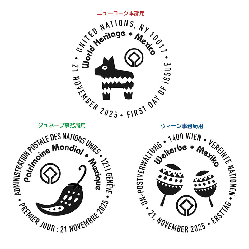 27次は、古代マヤ文明や、アステカ帝国発祥の地であるメキシコの文化遺産と自然遺産を描く。本部、事務局ごとに各2種ずつ発行。