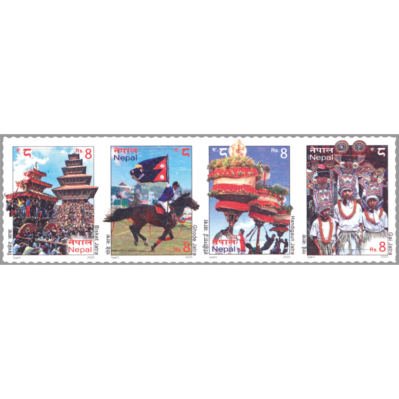 ネパールの祭儀。ビスケット・ジャトラ(バクタプル市の春祭り)、ゴデ・ジャトラ(カトマンズ盆地の馬祭り)、ハンディガウン・ジャトラ(カトマンズ、ハディガウン地区の車輪のない山車を逆さに担いで練り歩くユニークな祭り)、ガイ・ジャトラ(牛の姿で死者の霊を慰めるカトマンズの牛祭り)。