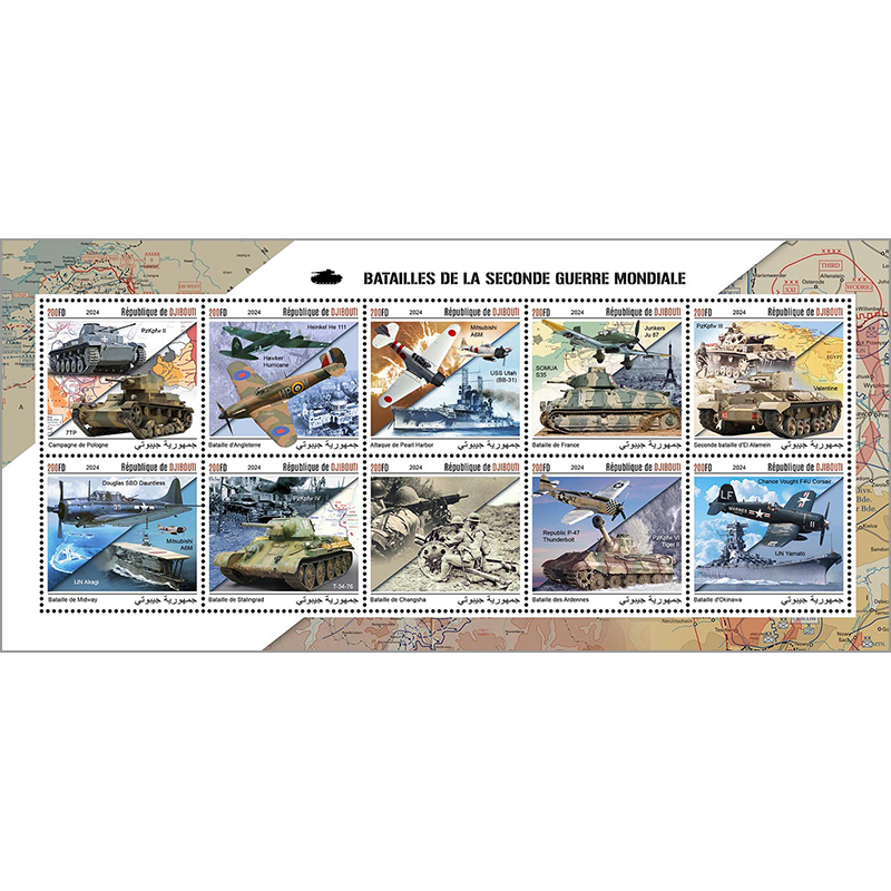 ポーランド侵攻(1939年)、バトル・オブ・ブリテン(1940年)、真珠湾攻撃(1941年)、フランスの戦い(1940年)、エル・アラメインの戦い(1942年)、ミッドウェー海戦(1942年、ダグラスSBD「ドーントレス」と三菱 A6M「零戦」空母「赤城」)、スターリングラードの戦い(1942〜43年)、長沙の戦い(1944年)、アルデンヌ(バジル)の戦い(1944〜45年)、沖縄戦(1945年)。