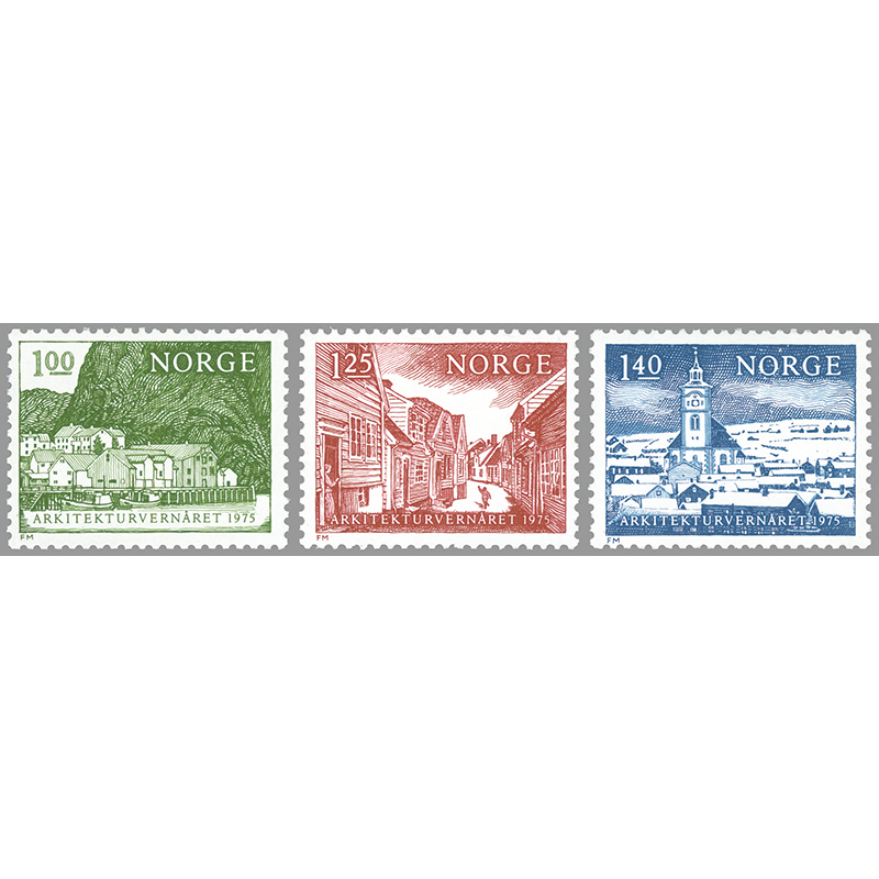 額面1.40クローネはレーロースの鉱山都市(ノルウェーの世界遺産「レーロース鉱山都市とその周辺」に含まれる)を描く。