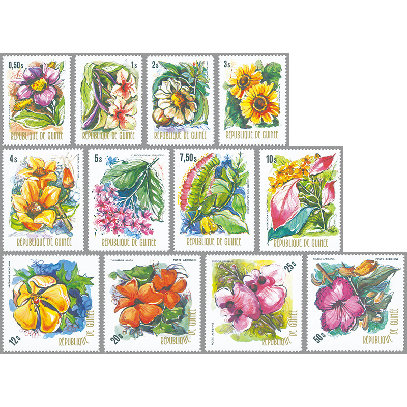 ヒゴロモコンロンカ、アザミゲシ、ヤハズカズラほかを描く。高額4種は菱形切手。
