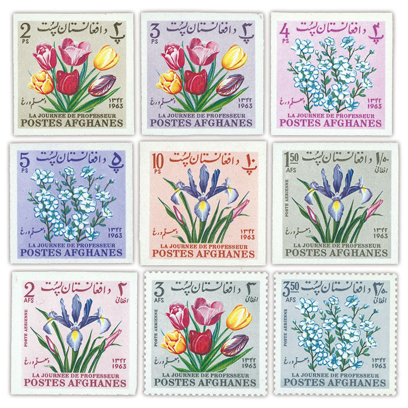 チューリップ、オランダアヤメほかを描く。図案は3種で、他は額面・刷色違い。