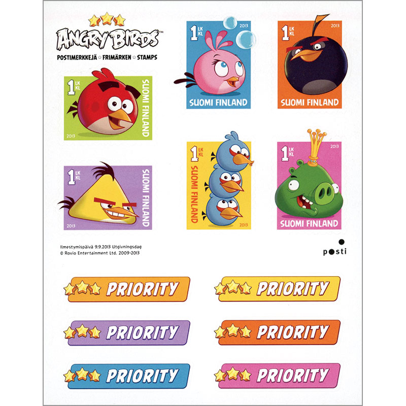 フィンランドのロビオ・エンターテインメント開発のモバイルゲーム「アングリー・バード」。キング・ピッグほかのキャラクターが図案の切手6種を収める。