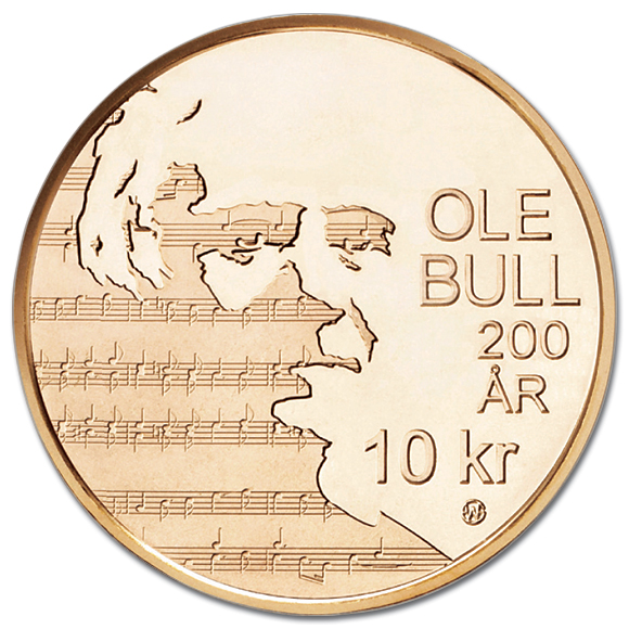 「ノルウェー初の国際的スター」と呼ばれる音楽家オーレ・ブルの生誕200周年を記念して発行されたコインです。コインはディスプレーにも最適なオシャレなバイオリン型ケースに収められています。