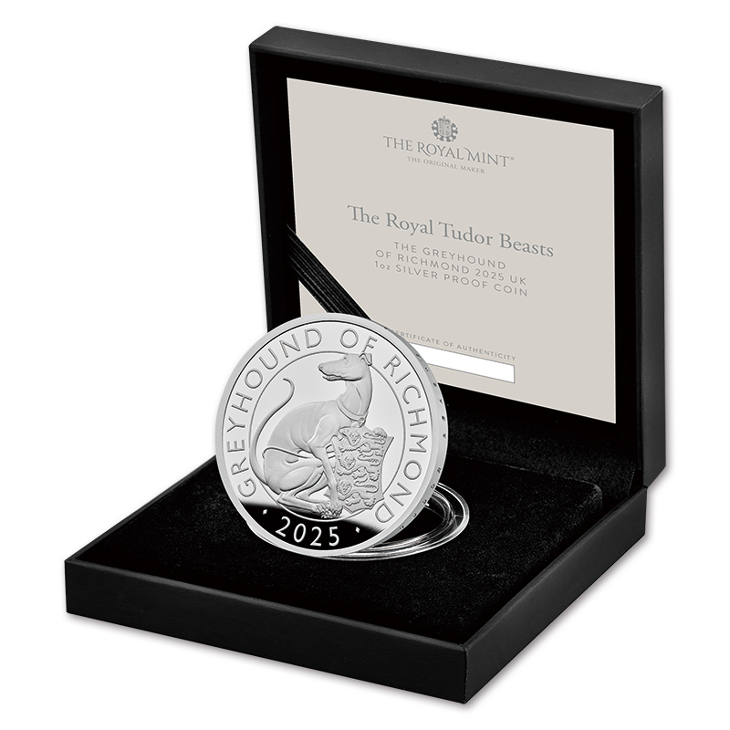 テューダー家紋章の獣コレクション リッチモンドのグレイハウンド 2ポンドプルーフ銀貨1オンス