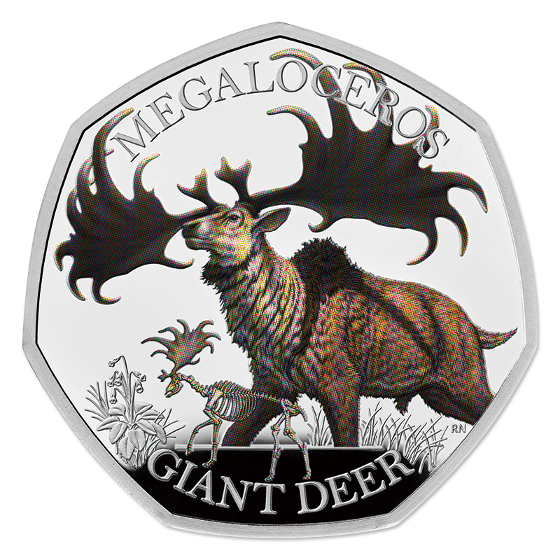 氷河期の巨人 ギガンテウスオオツノジカ 50ペンスカラープルーフ銀貨