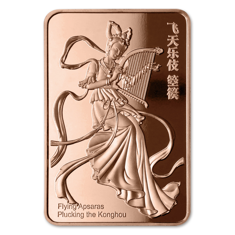 莫高窟壁画 敦煌飛天 箜篌を弾く飛天 20セント長方形銅貨