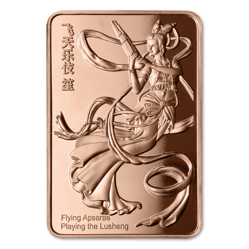 莫高窟壁画 敦煌飛天 芦笙を吹く飛天 20セント長方形銅貨