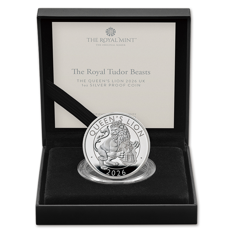 テューダー家紋章の獣コレクション 女王のライオン2ポンドプルーフ銀貨 1オンス