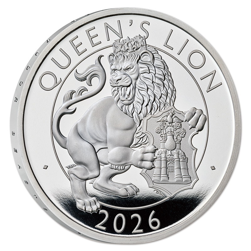 ヘンリー8世の命により制作された、ジェーン・シーモアの地位とテューダー家を象徴する紋章の獣「女王のライオン」が描かれています。著名なアーティストのデビッド・ローレンスによるデザイン。