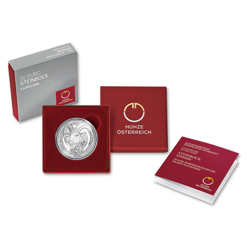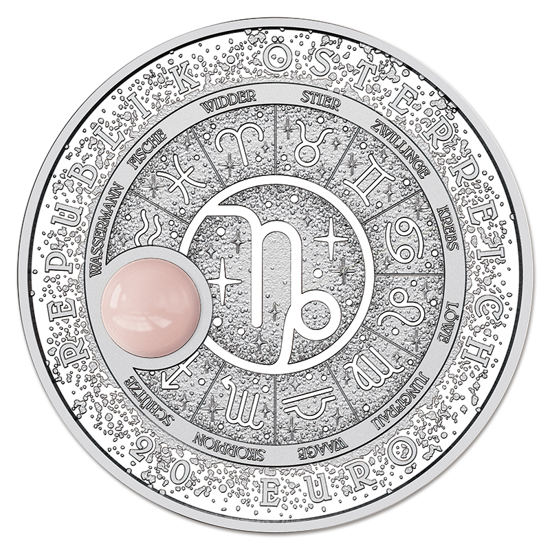 十二星座シリーズ やぎ座 20ユーロプルーフ銀貨 ローズクォーツ付き