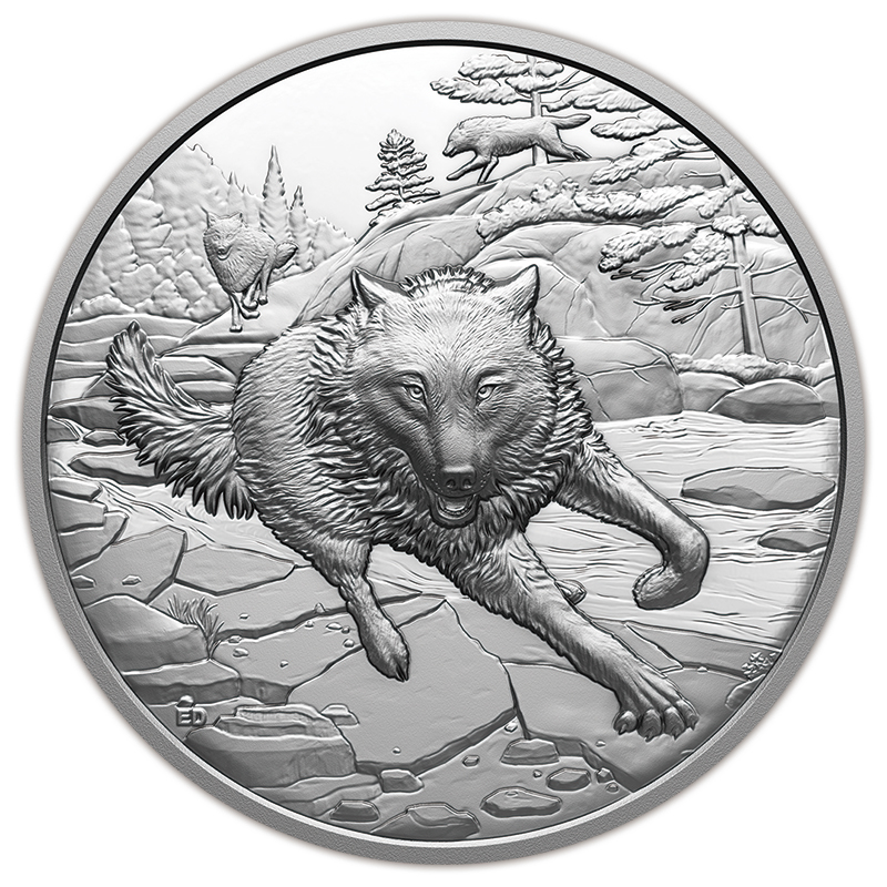 偉大なハンター ハイイロオオカミ 20ドルプルーフ銀貨