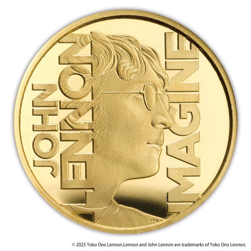 コインには、写真家ボブ・グルーエンが撮影した「New York City」と書かれたTシャツを着たジョン・レノンの写真をもとに、彼の横顔にフォーカスしてデザイン。左側に「John Lennon」、右側に「Imagine」の文字が刻印されています。