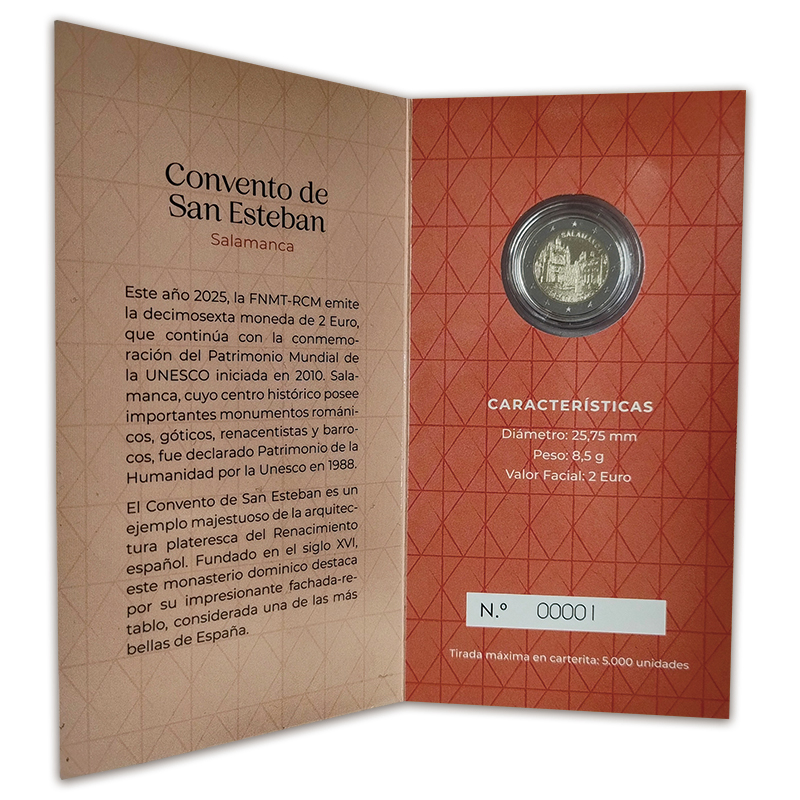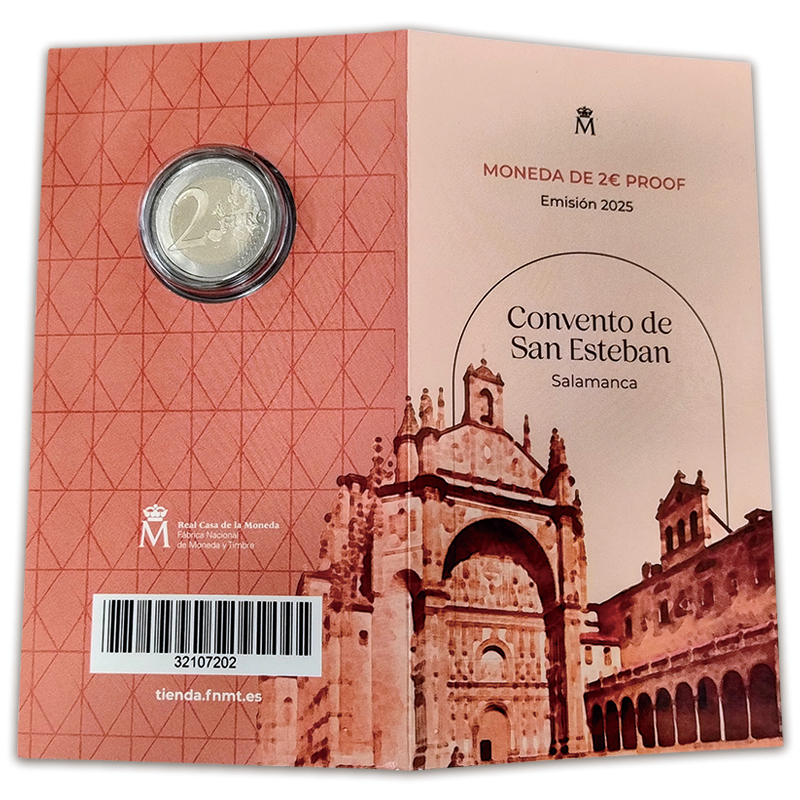 コインには、サラマンカ旧市街にあるサン・エステバン修道院が描かれています。修道院の建設は1524年に始まり、1610年に聖別(聖なるものとして一般使用と区別)されました。