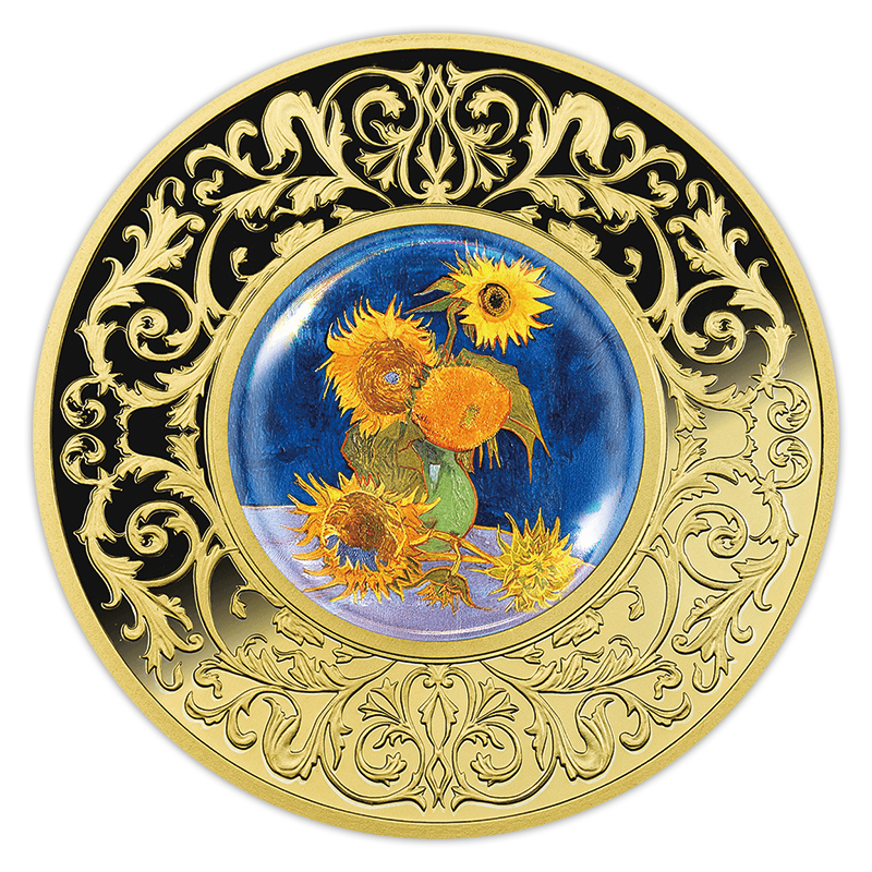 絵画の中の花シリーズ フィンセント・ファン・ゴッホ「ひまわり」500フランプルーフ金メッキ銀貨