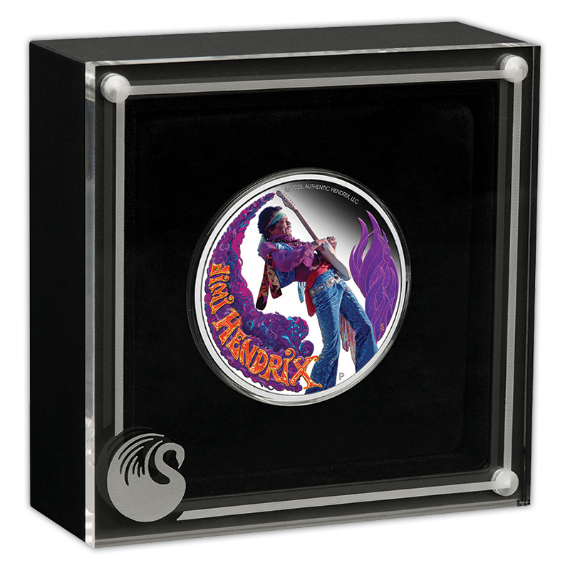 ☆音楽史に刻まれる史上最高のロック・ギタリスト、ジミ・ヘンドリックス(1942−1970)に敬意を捧げる1オンスカラー銀貨が登場!