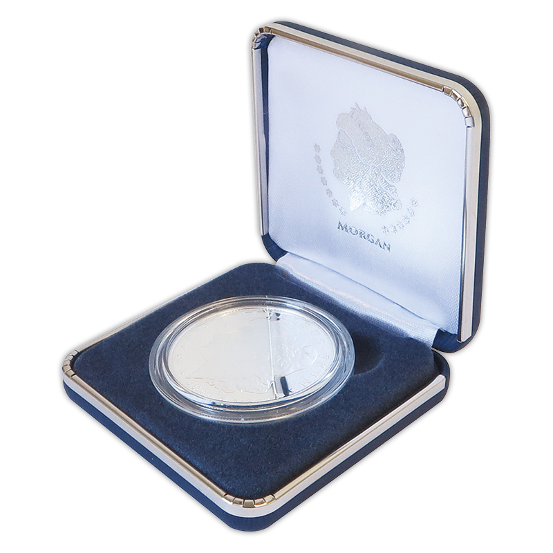 コインはエレガントなブラックボックスに収められており、美しい外装にはコインの表側が描かれ、真正性の証明書が添えられています。