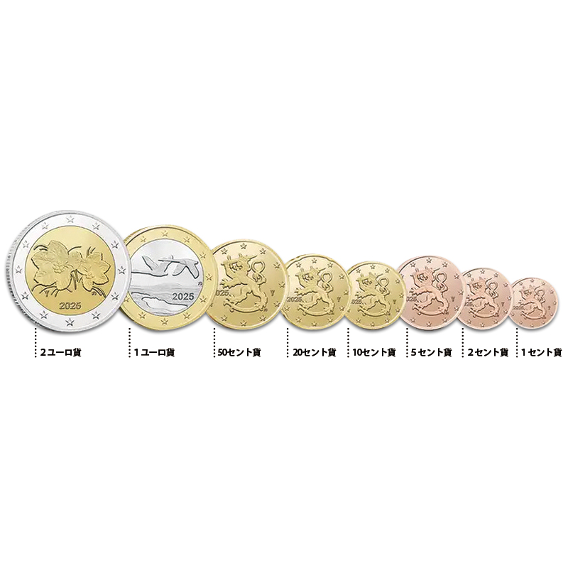 1、2、5、10、20、50セント、1、2ユーロ貨