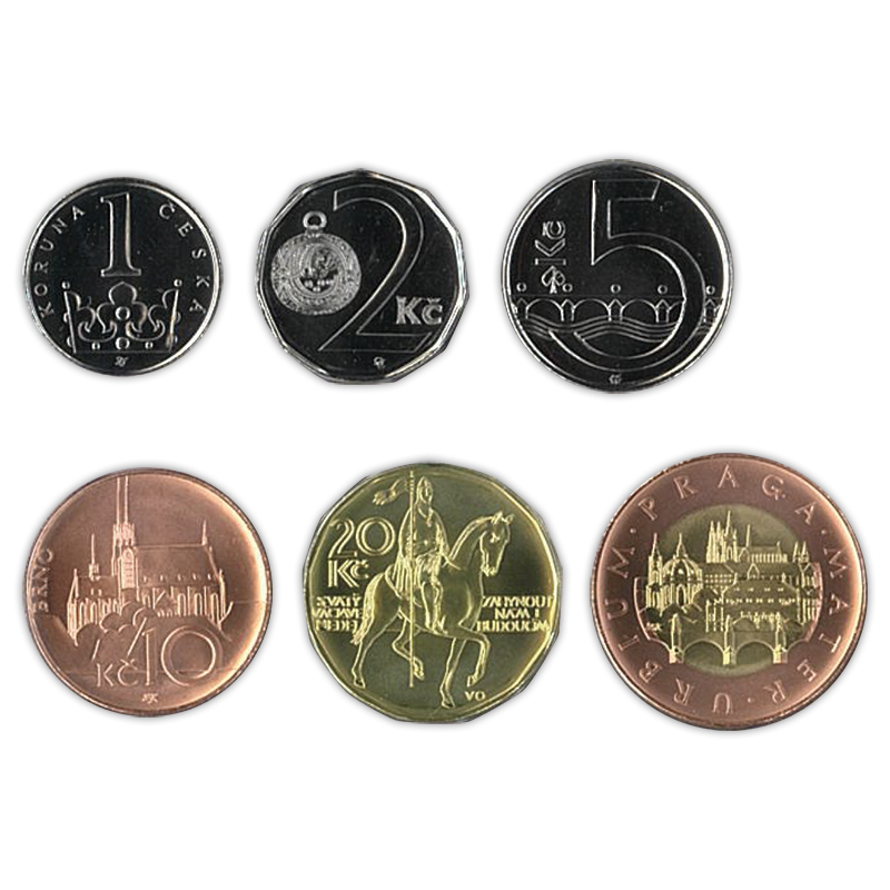 ☆チェコ共和国通常貨セット(1、2、5、10、20、50コルナ貨)