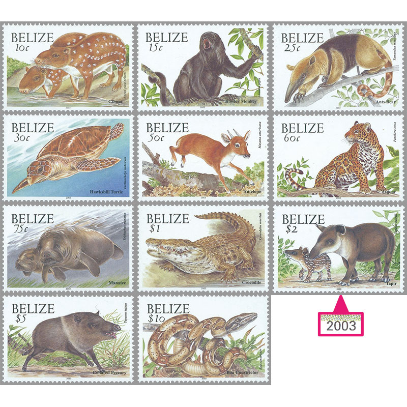 イグアナ、オオアリクイ、マナティ、バクほかを描く。図案下部に「2003」と年号が入っているタイプ。