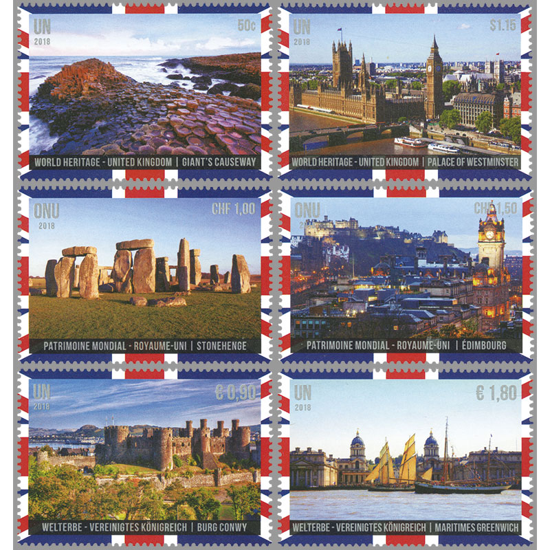 「ウェストミンスター宮殿、ウェストミンスター大寺院及び聖マーガレット教会」「ストーンヘンジ、エーヴベリーと関連する遺跡群」ほかが図案。