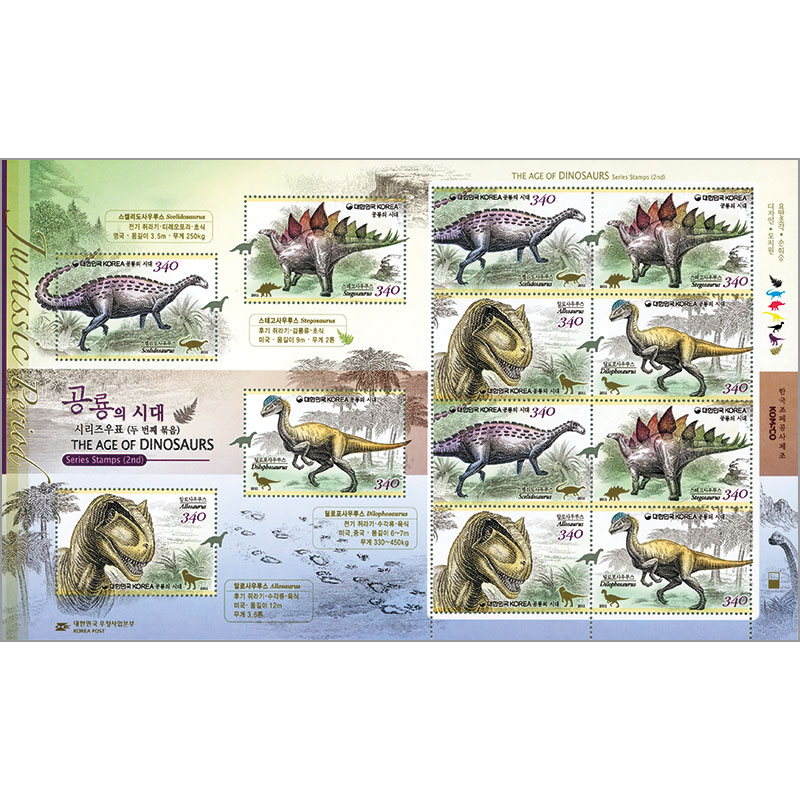 スケリドサウルス、ステゴサウルスほかを描く4種を各3枚収める。凹版と平版の掛け合わせ。
