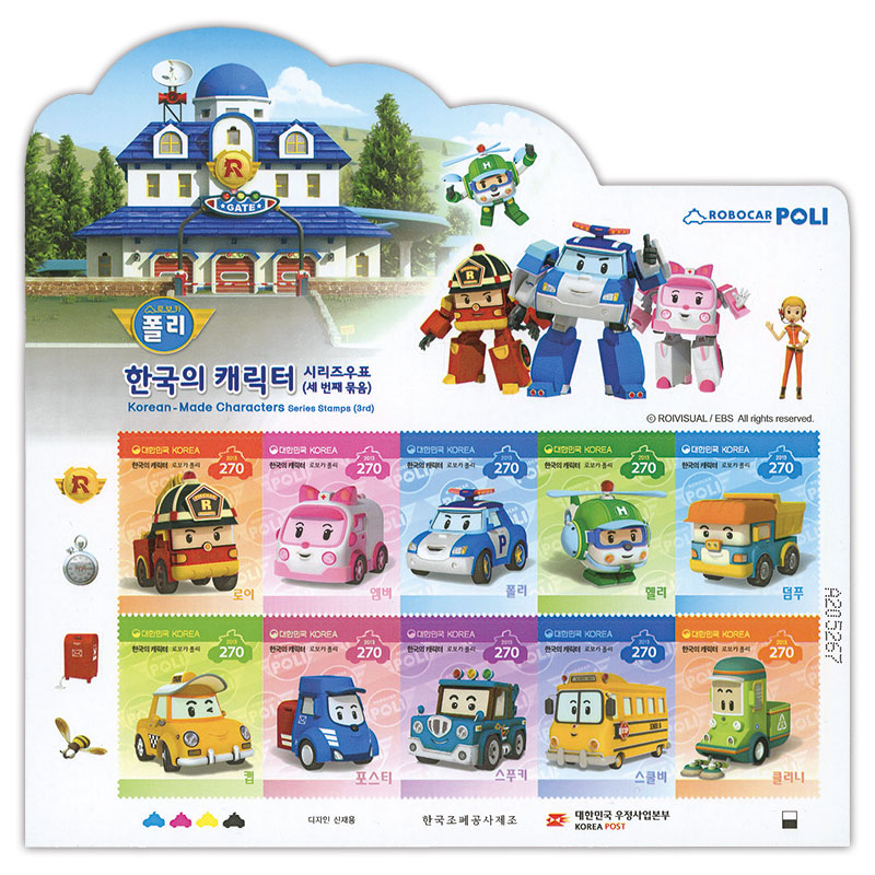 韓国のテレビアニメ「ロボカーポリー」のキャラクターが図案。日本でも放映された時期がある。