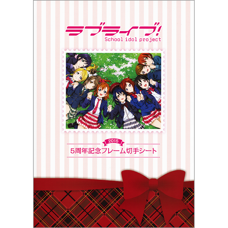 2015年度に企画展開から5周年を迎えるスクールアイドルプロジェクト「ラブライブ!」のフレーム切手。切手やクリアファイルは、歴代のCDジャケット。