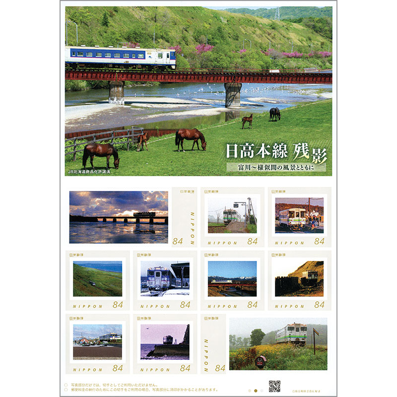 切手には、富川〜様似間の美しい四季を駆け抜ける日高本線の姿が収められています。