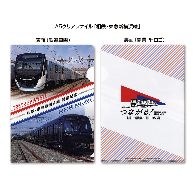 相鉄・東急新横浜線が2023年3月18日に開業したことを記念し、相鉄線と東急線の車両や相模鉄道キャラクター「そうにゃん」と東急線キャラクター「のるるん」を題材に作成。