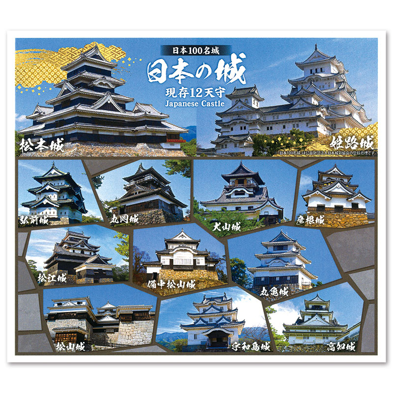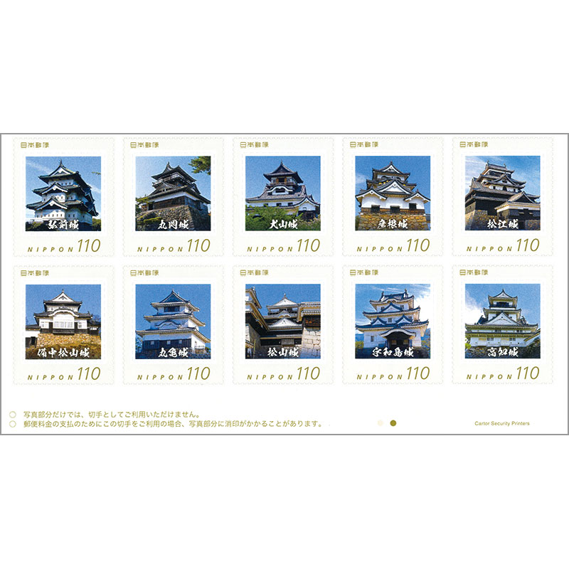 財団法人日本城郭協会が定めた「日本100名城」のうち、江戸時代以前からの天守が残されている12城がフレーム切手になりました。