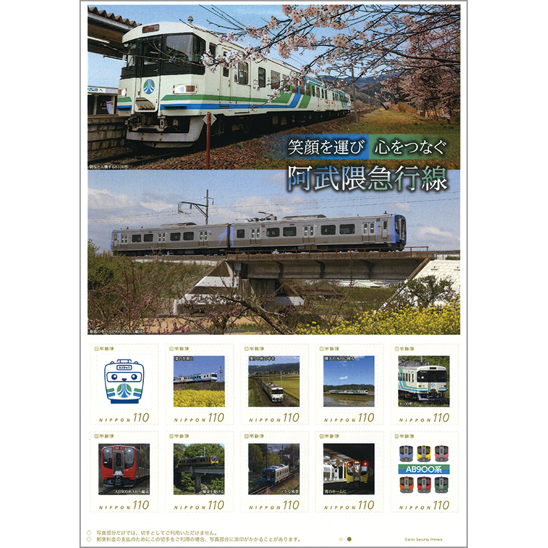 四季折々の沿線風景の中を走る電車がデザインされています。