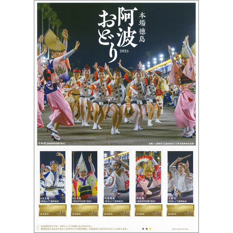 2024年の阿波おどりの演舞場で撮影されたしなやかな女踊りや、豪快な男踊りをいきいきとした表情で披露する踊り手たちの写真を採用。シート地は平和連。