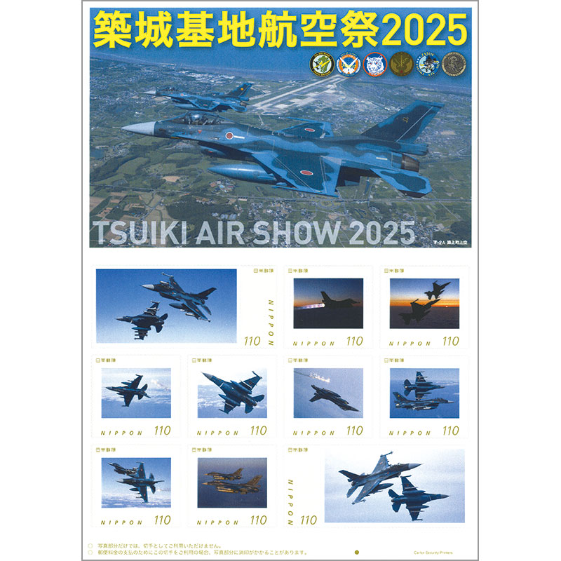 11月30日に航空自衛隊築城基地で開催された「築城基地航空祭2025」を記念。今回は築城基地所属のF-2戦闘機の写真が採用され、編隊飛行やフレア射出の瞬間、夕焼けをバックにアフターバーナーを点火した姿など、迫力ある飛行シーンが収められています。