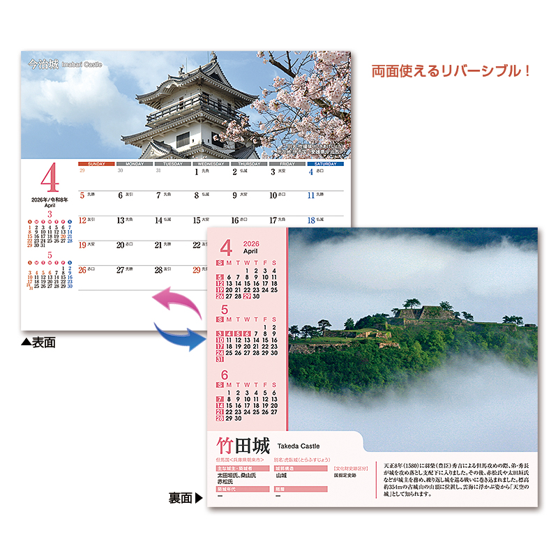 ●内容:18枚(表紙/2026年1〜12月/年間カレンダー/ポストカード/城マップ/しおり他)、両面フルカラー