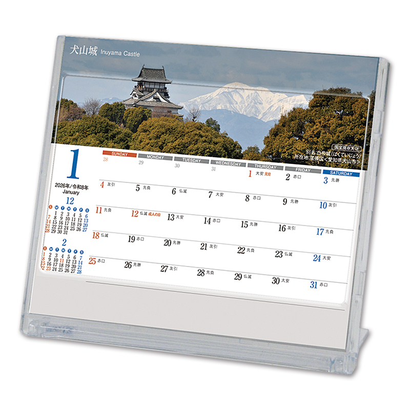 ●素材:マットコート紙(カレンダー)、スチロール樹脂(ケース兼用スタンド)